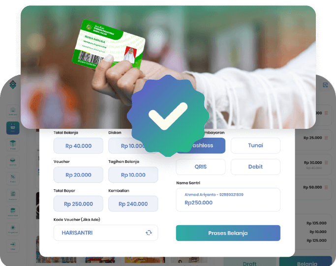 Belanja di kopontren dengan kartu santri makin mudah. Transaksi tabungan dan penarikan tanpa ribet!