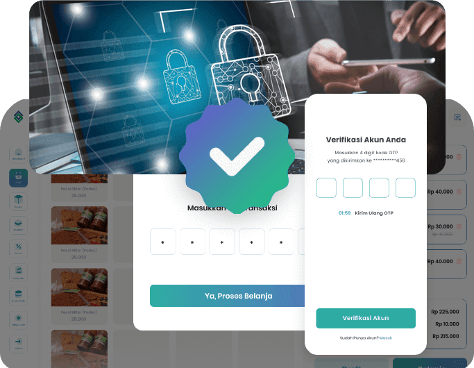 Semua aktivitas terintegrasi dengan data keamanan password dan PIN santri pada setiap transaksi.